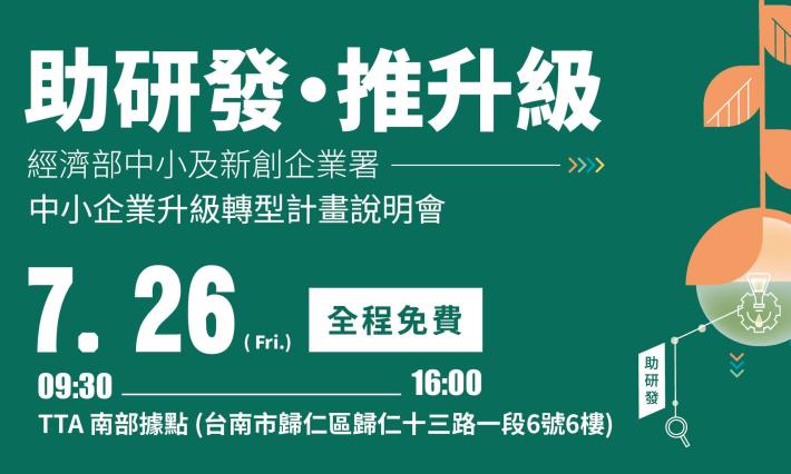 各位親愛的產業先進,您好: 沙崙綠能科技示範場域,為我國首座綠能科技測試驗證場域,為促使本場域成為全國最完善的綠能科學教育基地, 擬於7/2(二)辦理環境教育試營運,敬邀各位先進撥冗蒞臨場域,參與環境教育課程並給予指導, 期望借助各位先進寶貴經驗與建議,促使本場域未來環境教育營運更臻順利及完善!感謝有您的參與!也懇請協助轉發活動訊息給更多朋友喔!謝謝! 【日期】 113年7月2日(星期二) 【時間】 上午場9:30-12:00、下午場14:00-16:30 【對象】 限大學以上學生及社會人士報名(各場次名額有限,額滿為止) 【費用】 免費 【地點】 沙崙綠能科技示範場域(台南市歸仁區高發二路360號,近台南高鐵及台鐵沙崙站) 【報名網址】 https://reurl.cc/0veRvk 指導單位:經濟部能源署 主辦單位:工業技術研究院